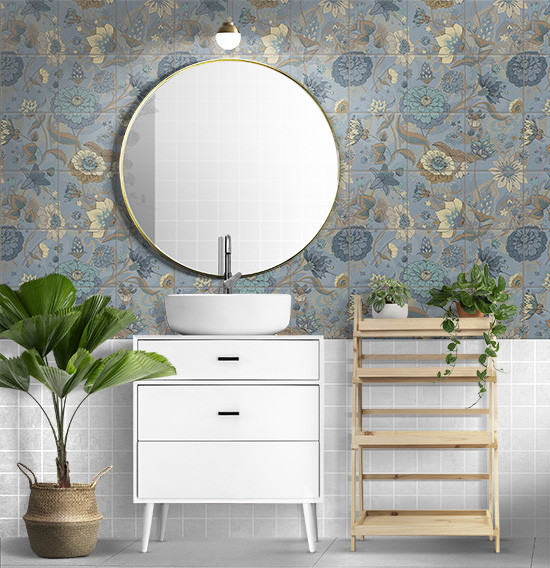 Blue garden - kék virágmintás fürdőszoba csempe