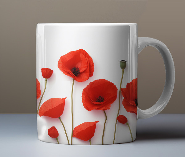 Pipacs mintás ajándék bögre 3D hatású virág mintával.