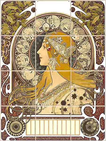 Zodiákus - Alfons Mucha csempekép (80 x 60 cm)