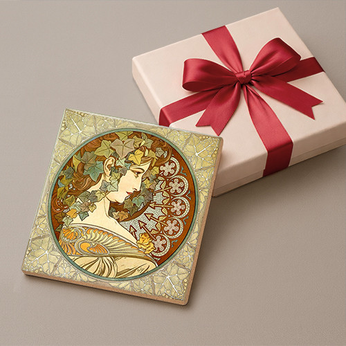 Edényalátét csempe, dekorcsempe Mucha női arc mintával