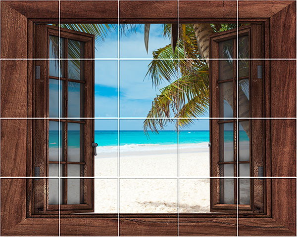 Ez az egyedi, nyitott ablak hatású csempekép elrepít egy trópusi tengerpartra, ahol fehér homokos part, kék égbolt, pálmafák és nyugodt óceán vár. A fa keretű ablak optikai illúziót kelt, mintha valóban a tengerre nyílna egy szoba ablaka. A jelenet nyugalmat, szabadságot és nyaralás hangulatát hozza el bármelyik beltérbe – fürdőszobába, konyhába vagy wellness térbe. Tökéletes választás, ha a természet közelségét szeretnéd becsempészni otthonodba egy dekorcsempe segítségével.