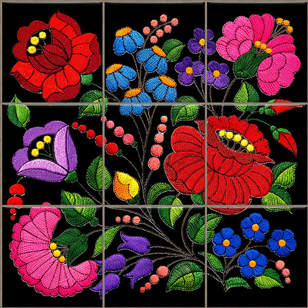 Kalocsai hímzés mintás dekorcsempe – magyaros virágmotívum