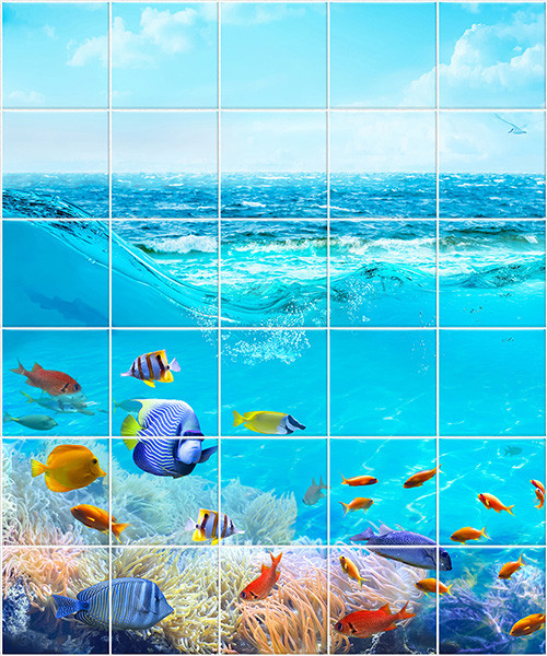 Korallzátony trópusi halakkal - mozaik csempe (120x100cm)