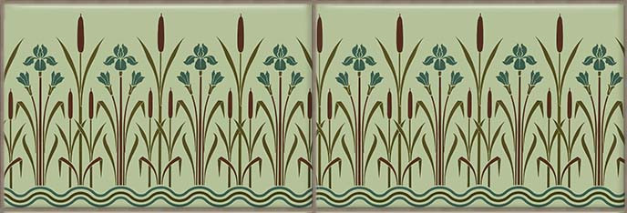 Szecessziós csempe nádas, íriszek és vízhullám mintával