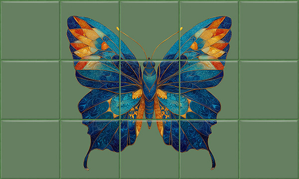 Pillangó mintás fali csempe konyhai vagy fürdőszobai falfelületre.
