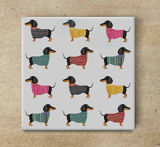 Edényalátét csempe, dekorcsempe pulóveres tacskós mintával