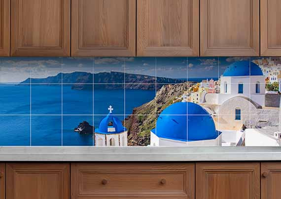 Konyha Csempe Santorini látkép mintás
