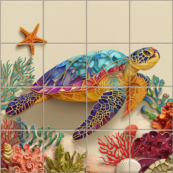 Színes tengeri teknős - fürdőszoba csempe