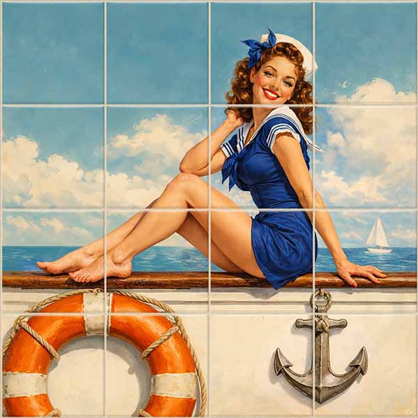 Tengerész Pin-up lány - mozaik csempe (80x80 cm)