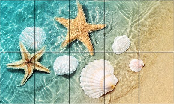 Fali csempe tengeri csillagokkal és kagylókkal - kagylós csempe