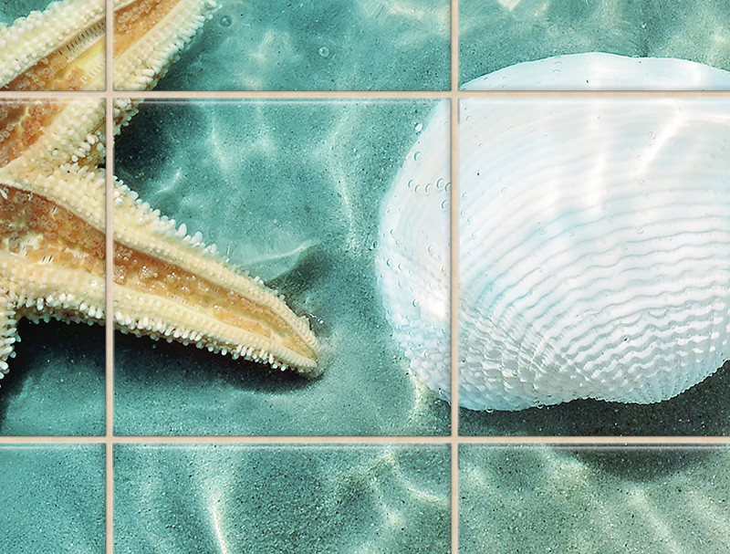 Fali csempe tengeri csillagokkal és kagylókkal - kagylós csempe