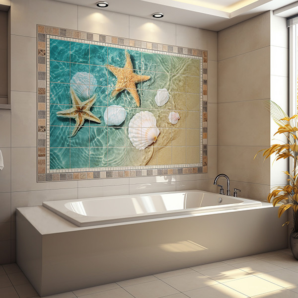Kagylós fürdőszoba csempe tengeri csillaggal