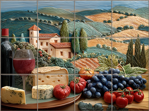 Toszkán dombvidék borral és sajttal - konyhai csempe