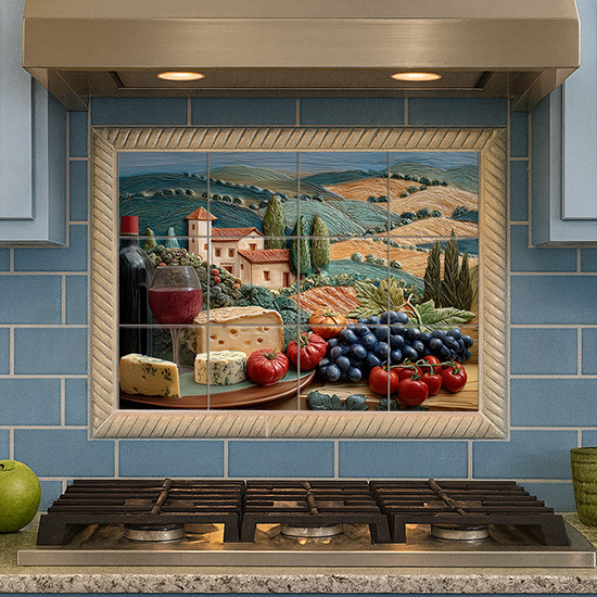 Toszkán dombvidék borral és sajttal - konyhai csempe