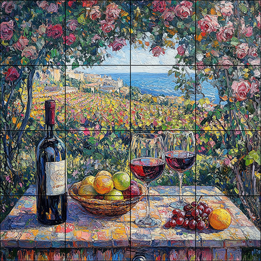 Borozás a rózsalugasban - mozaik csempe (80x80 cm)