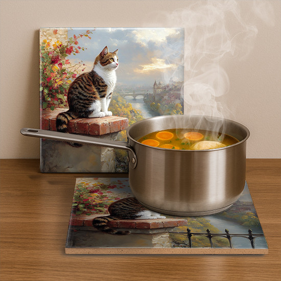 Edényalátétként való használathoz külön kérhető rá parafa talp csúszásgátló, de kiválóan funkcionál parafa talpak nélkül is. Edényalátétként alkalmazva elhelyezhető közvetlenül a tűzhely mellett a forró edények ráhelyezése céljából, vagy étkezőasztalon dekorációnak is.