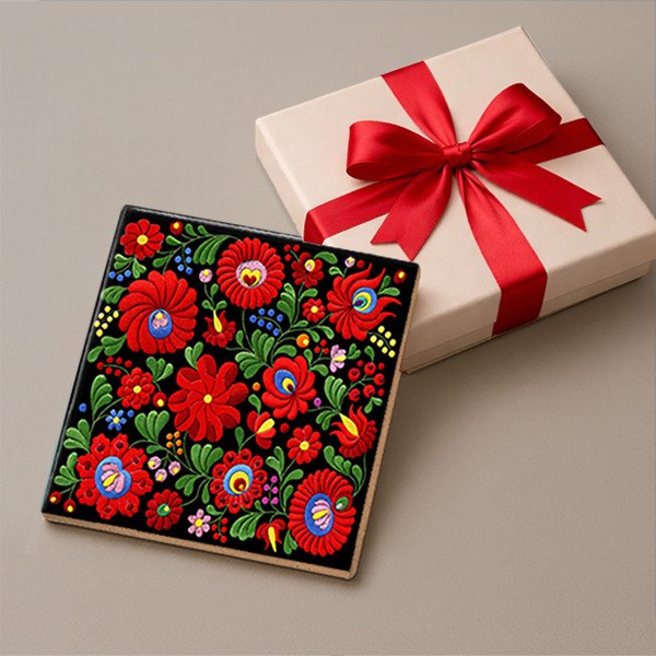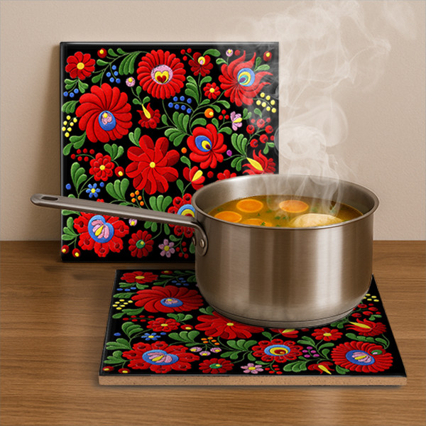 Hungarian Matyó folk art motif - tile trivet