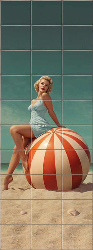 Pin-up girl on the beach - tile mural
