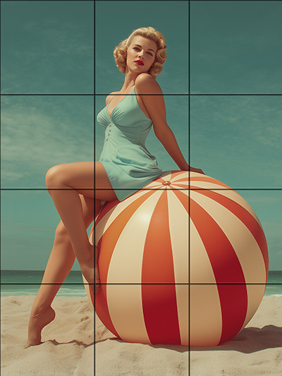 Pin-up girl on the beach - tile mural