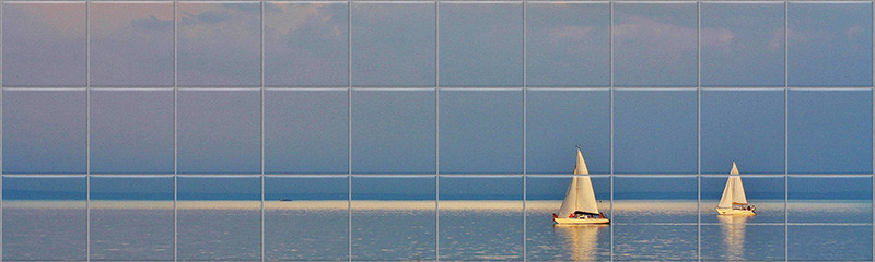Kitchen tile mural of Lake Balaton with sailing ships