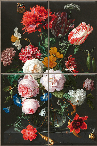 Ceramic tile mural with classic-style still life.