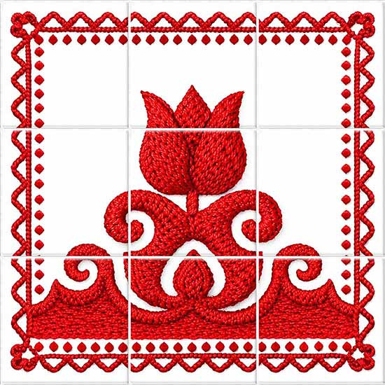 Transylvanian Tulip Embroidery - ceramic tile mural