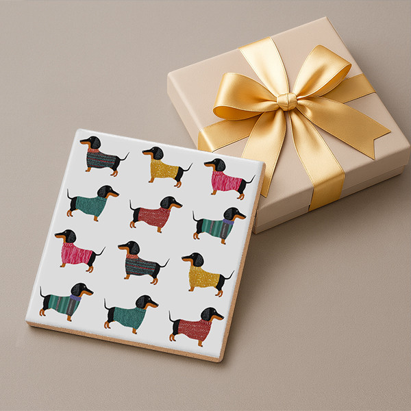 Dachshunds in sweater - tile trivet