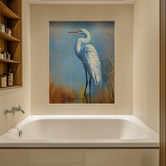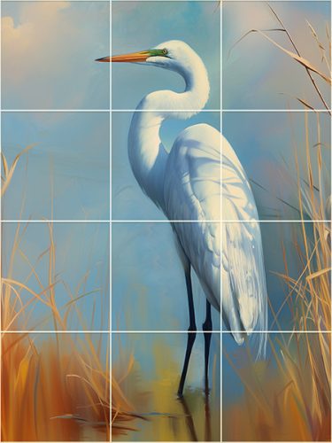 Egret in the reeds - tile mural