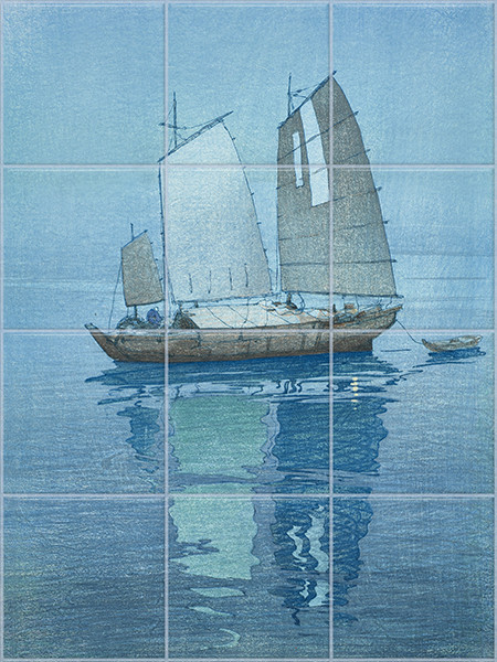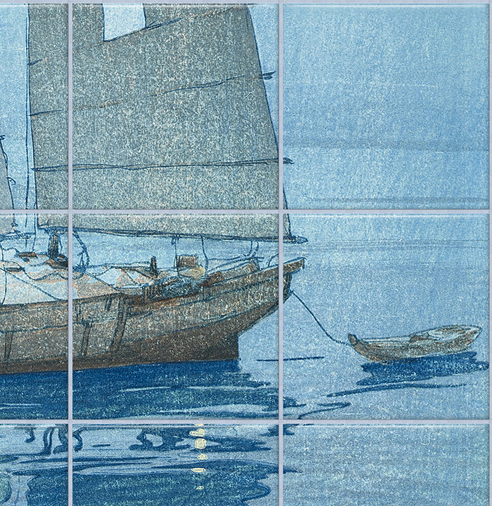 Vitorláshajó és csónak mintás kék alapszínű csempe