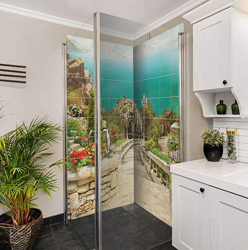 Make your home or a shared space more unique with decorative tile pictures! Our tile artworks and mosaics are perfect for decorating surfaces in kitchens, bathrooms, or commercial spaces. They are also ideal for enhancing furniture surfaces—such as the front of a kitchen island. A well-placed mosaic tile picture, in matching color and style, above the stove or countertop, above the sink or washbasin, or even above the bathtub or on the shower wall, adds a bold and distinctive touch to your interior!
