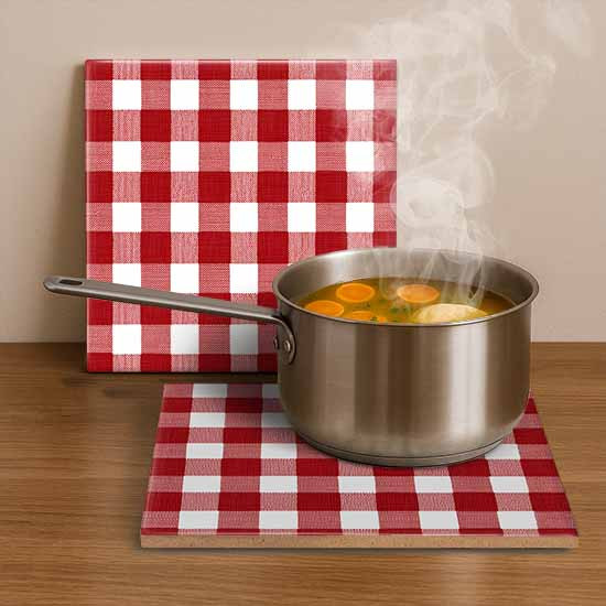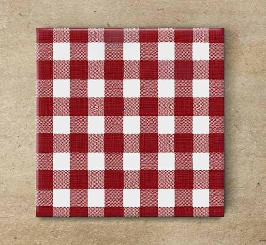 Red checkered tablecloth - ceramic tile trivet