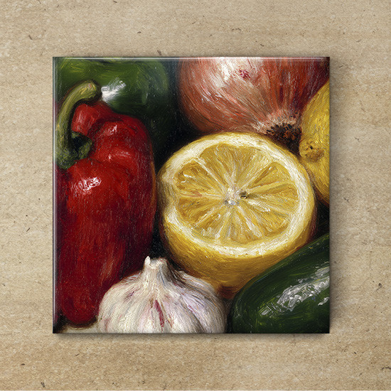 Edényalátét csempe, dekorcsempe zöldség mintával