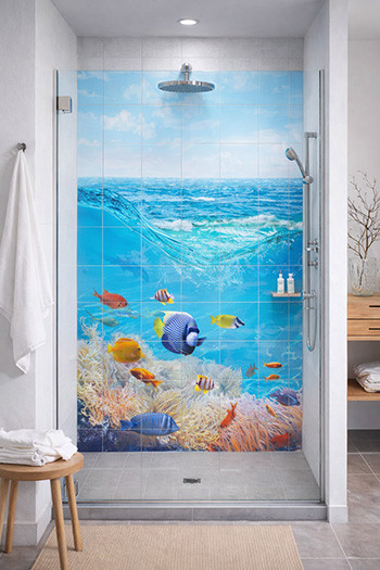 Zuhanyzó csempe színes halakkal