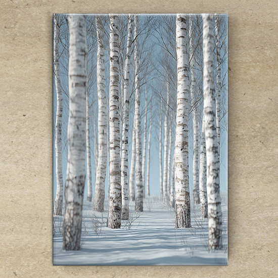 Kerámia edényalátét / dekorcsempe havas erdő, nyírfa mintával.